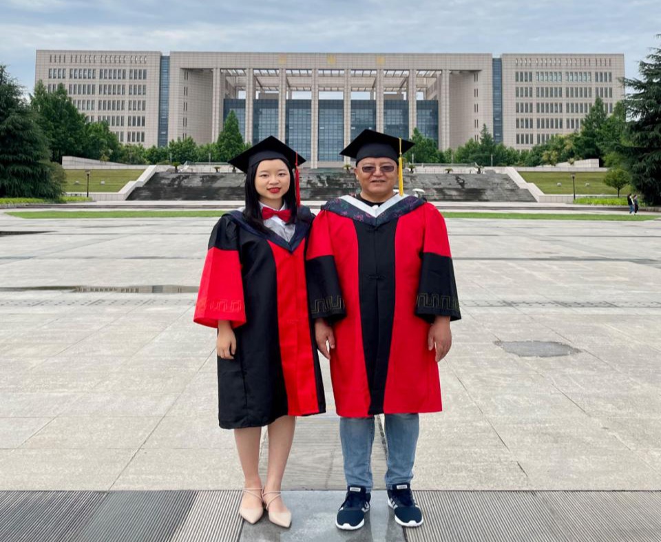 (林馨博士与导师张文鹏教授合影)