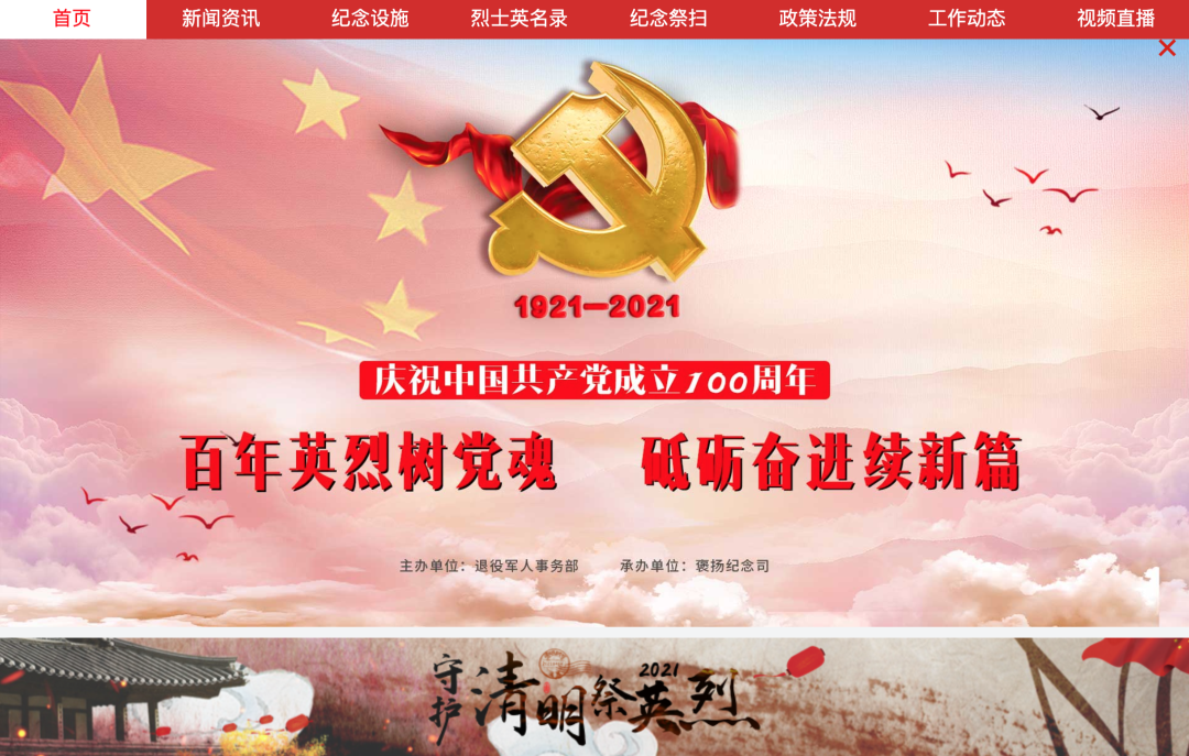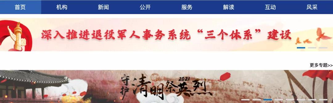 通道一:点击退役军人事务部官网(http://www.mva.gov.cn),通过首页专题中的“守护·2021清明祭英烈”专题参与活动。