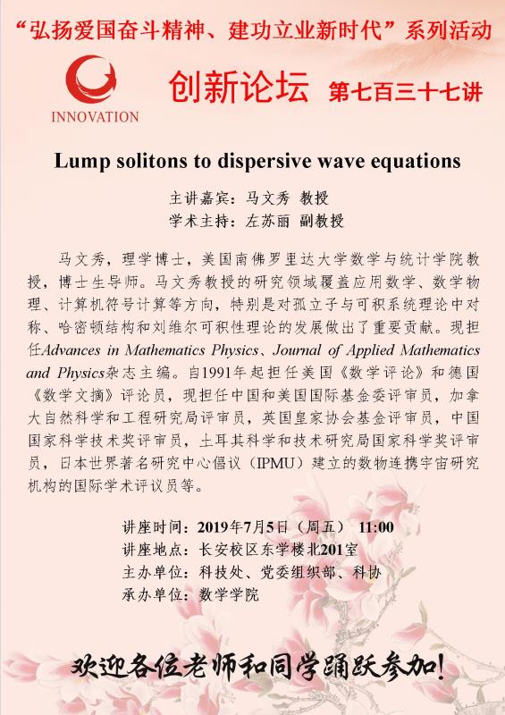西北大学创新论坛第七百三十七讲:Lump solitons to dispersive wave equations