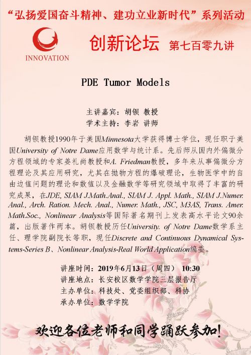 西北大学创新论坛第七百零九讲:PDE Tumor Models