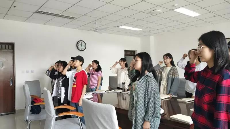 最后,在支部书记带领下,参会人员重温入党誓词,学生党员们应当承担的责任与义务。