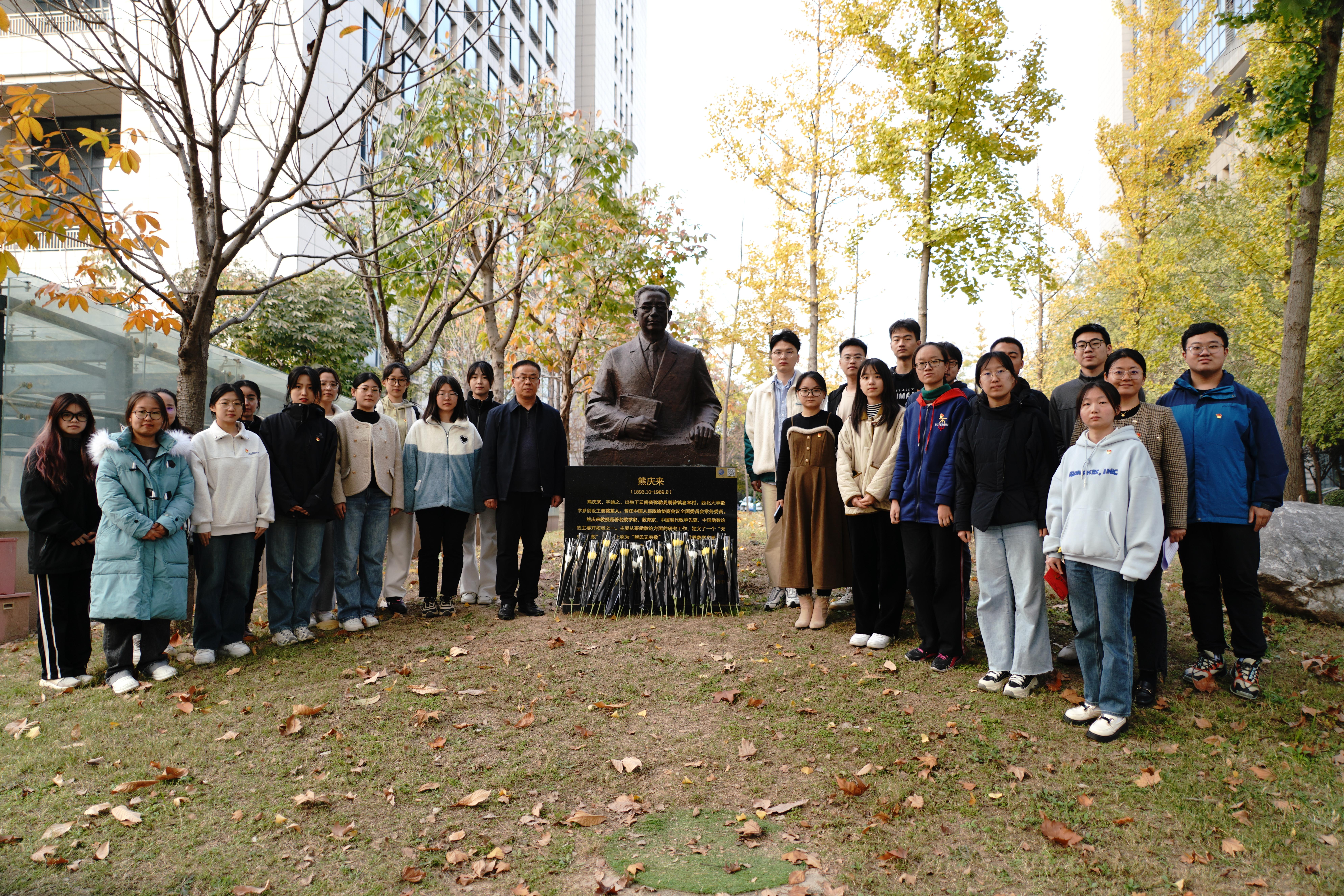 党课结束后,全体党员来到著名数学家王戍堂先生与熊庆来先生塑像处,分别向两位先生雕像敬献鲜花并致以最深切的缅怀和最崇高的敬意。最后,李长宏书记向全体党员表达了殷切期望,希望大家向老一辈数学家和杰出校友学习,汲取榜样力量,坚持自我革命,以实际行动实现个人全面发展,努力为学院和学校事业做出贡献。