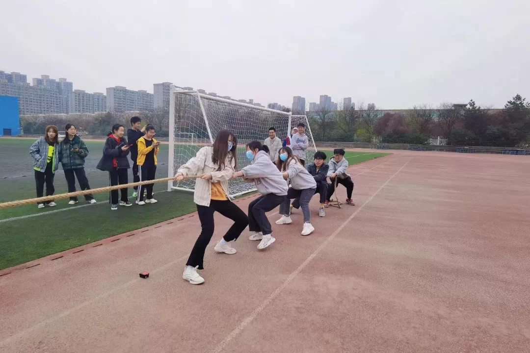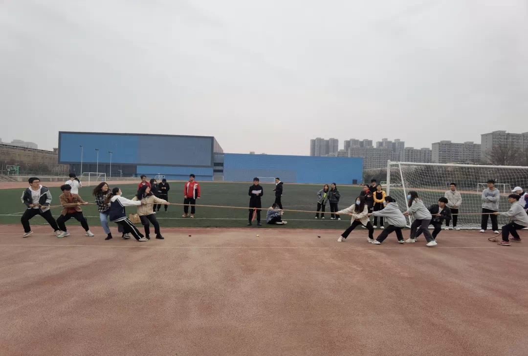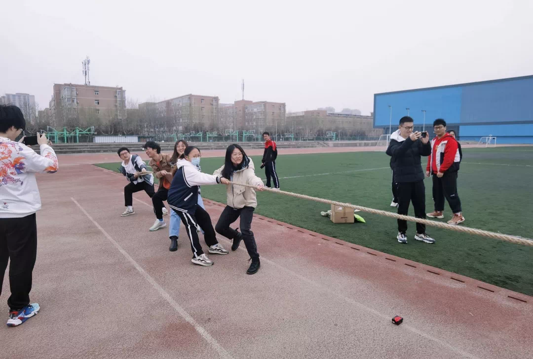 料峭的春风不能吹散少年的意气。他们稳扎马步,重心下移,凝神聚力,拿出了力拔山兮的态势,向自己队伍的方向一起用力。“一二一二”的呐喊响彻了整个操场,气势十分壮观。