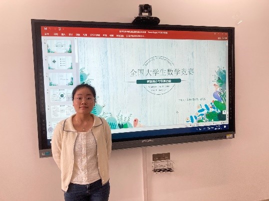2019级数学与应用数学本科生强嘉仪为大家介绍了大学生数学竞赛的主要内容和备赛过程。强嘉仪学姐主要从竞赛简介、备赛过程、比赛收获、建议总结四个方面为大家进行了详细的讲述。针对备赛过程,她建议大家“表在题目,深于思维;贵在行动,成于习惯”,有条不紊、松弛有度地进行题目训练,注重平时的日积月累;最后她鼓励大家勇敢迈出第一步,以赛促学、积累经验,在认真准备竞赛的过程中体会“博观而约取,厚积而薄发”的深刻内涵。