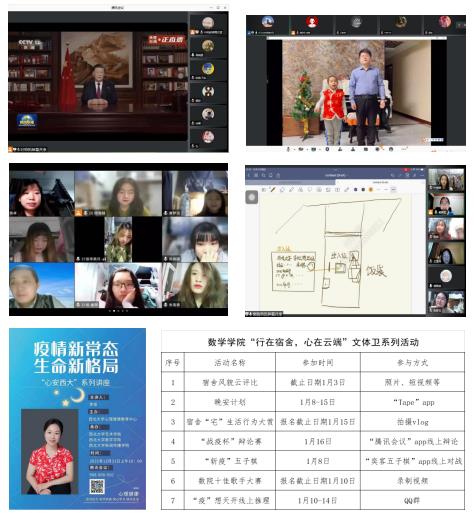 西安本轮疫情肆虐,确诊病例激增,防控形势异常严峻,学院始终把“坚定学生战疫信心”当作头等大事攻坚。多次分年级召开疫情防控工作线上宣讲会、动员会,借助“三微一站”宣传新冠病毒、出血热等传染病防控知识,教育学生科学防疫。2021年12月31日,全院师生通过年级、班级、导师组、宿舍等多种方式,学院领导、研究生导师与千余学生相聚云端,共同聆听习近平总书记发表2022新年贺词、参与线上团建活动、畅谈新年愿望,欢度跨年良宵,感染学生同心战疫。同时,还通过设置学生权益线上信箱、深入楼宇宿舍送温暖、举办专家防疫心理健康专题讲座、开展“行在宿舍,心在云端”文体卫系列活动、畅通心理咨询通道等方式,引导学生信心胜疫。