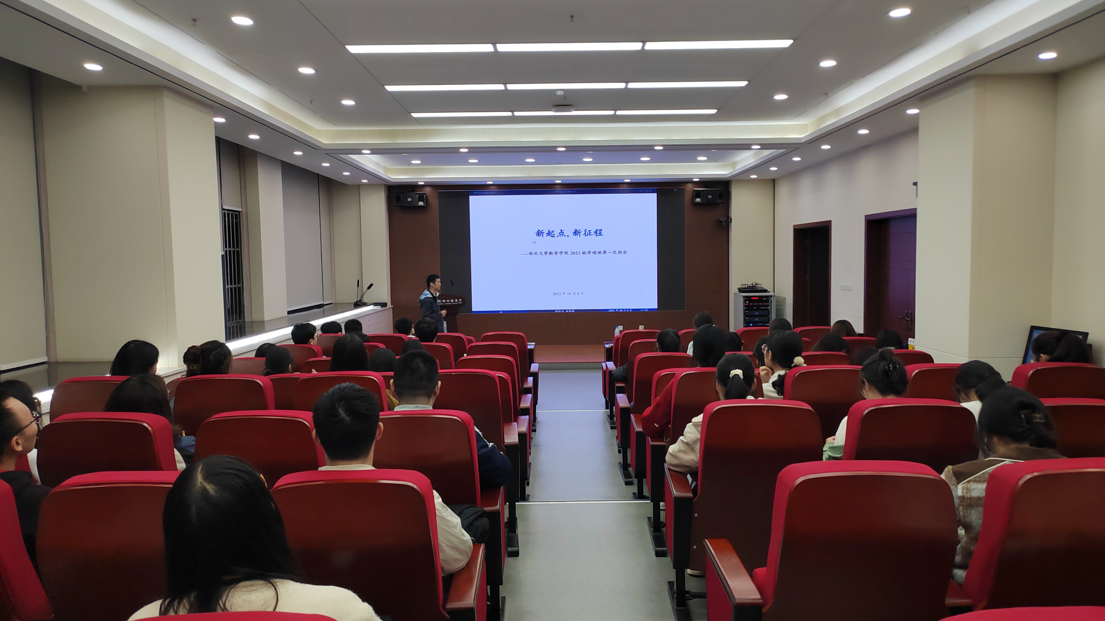 2023年9月26日,班主任龙玉麒老师主持召开2023级应用统计专硕班班会。龙老师从“夯实专业基础”“注重时间管理”“擅用各类资源”“职业规划与求职方向”等方面,系统讲解研究生期间的各类注意事项和经验做法。2023年10月8日,2023级学硕班班会在东学楼楠竹报告厅举行,班主任雷东霖老师主持活动。雷老师结合个人经历,解答了“如何读研究生”“研究生需要具备的能力”“数学专业的研究生职业发展规划”“如何准备考博”等问题。同时,两位老师指出,成长和发展是研究生生的主题,同学们除了聚焦学习和科研,还应该积极参加校院活动、学研用融合、保持身心健康,实现德智体美劳全面发展。