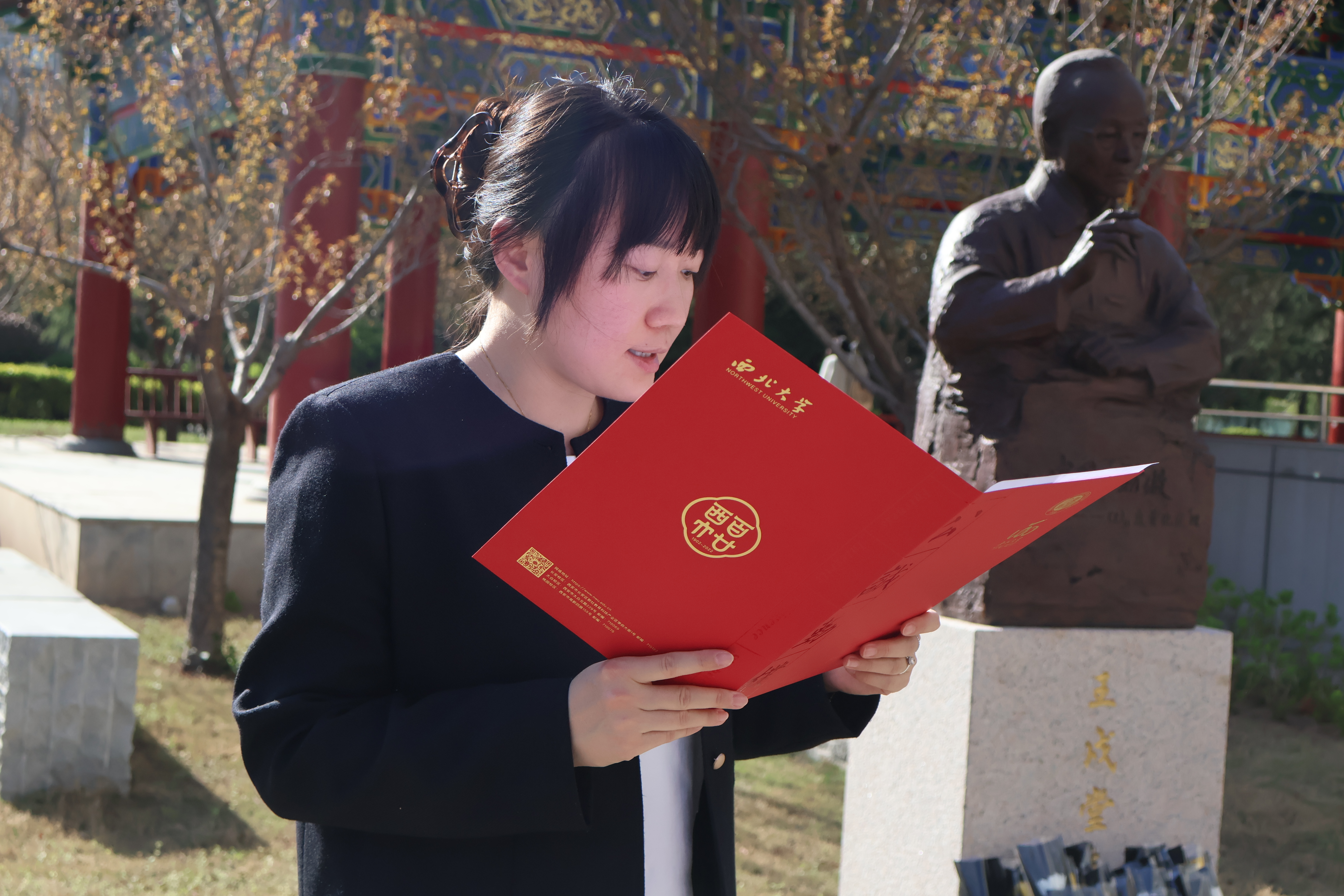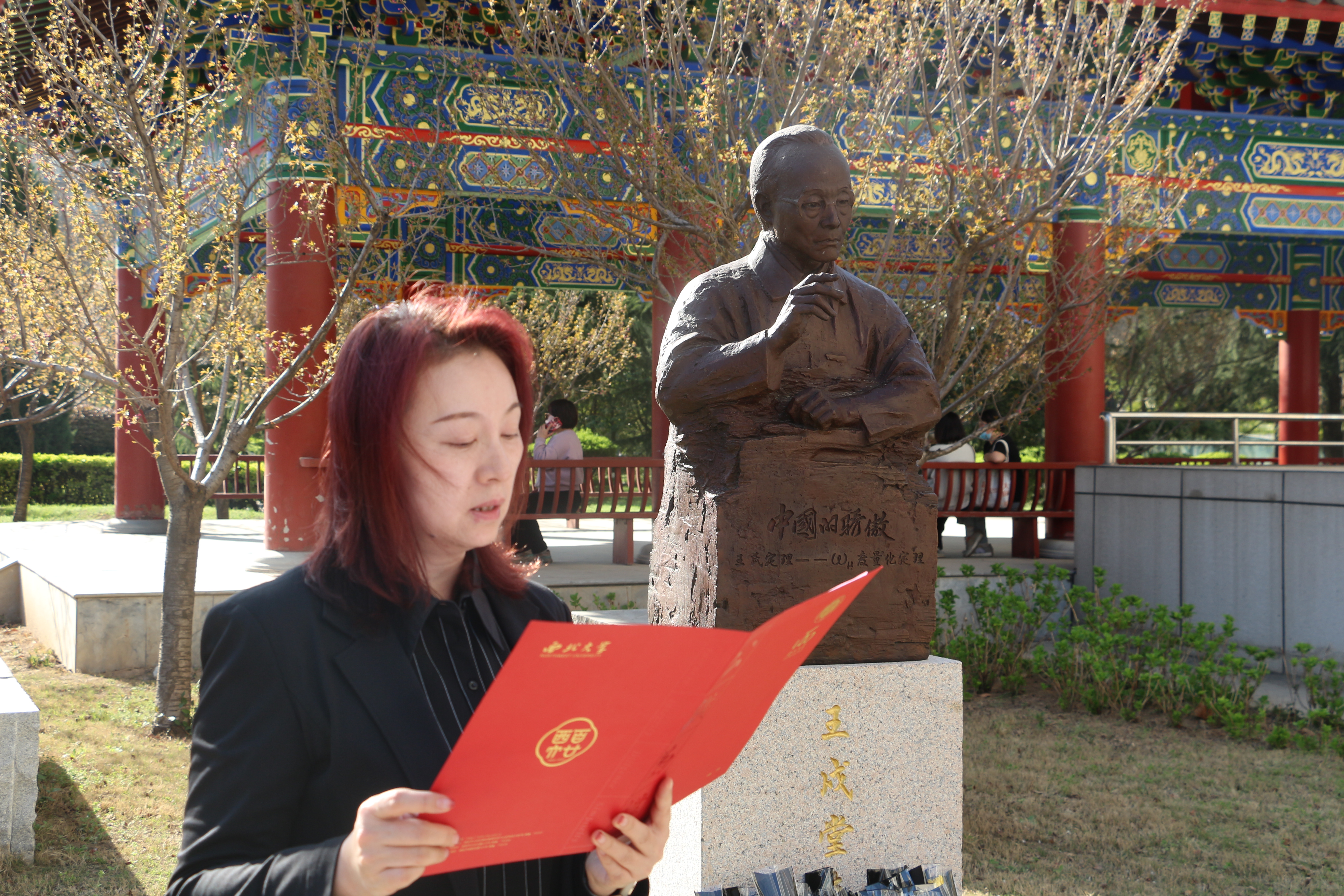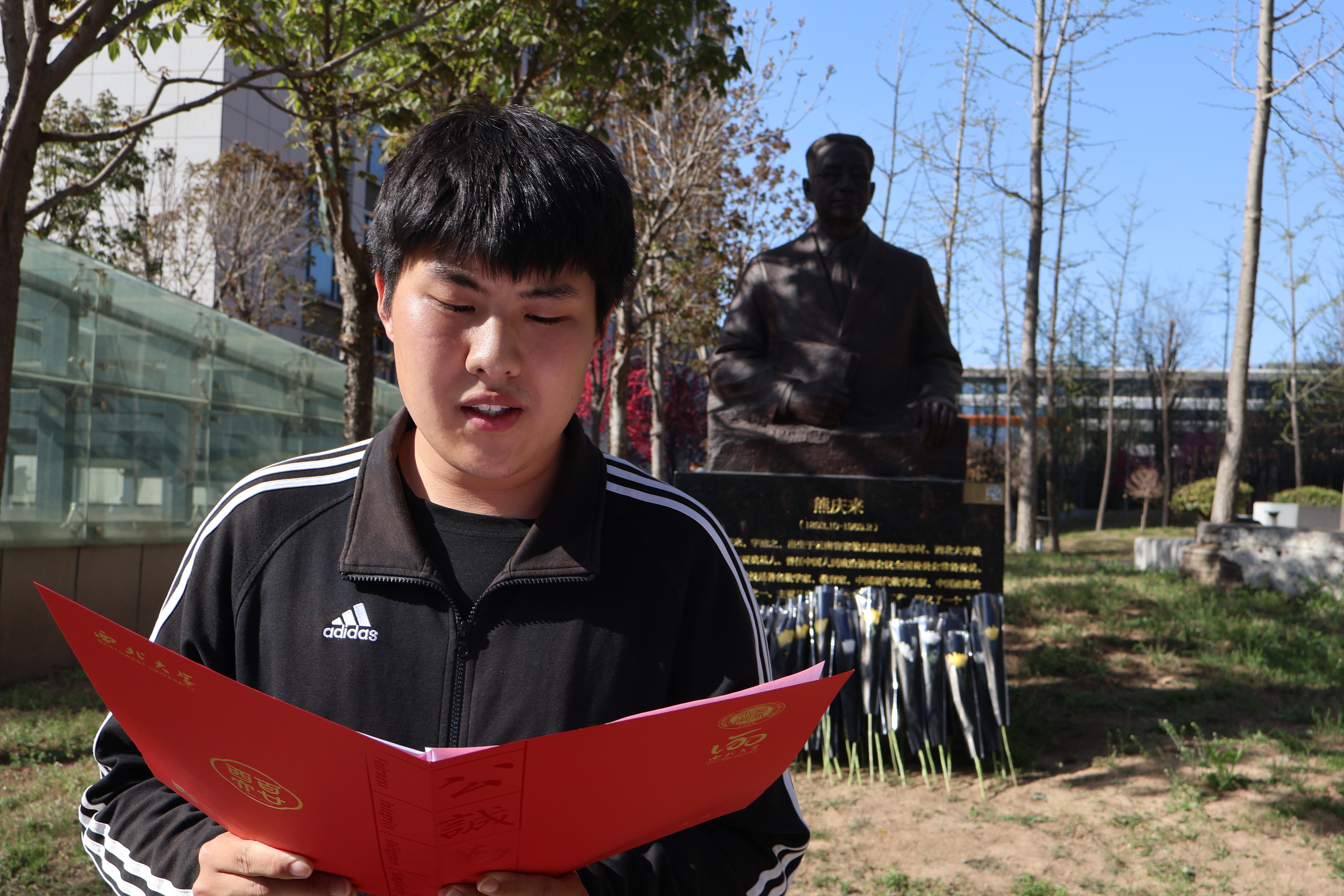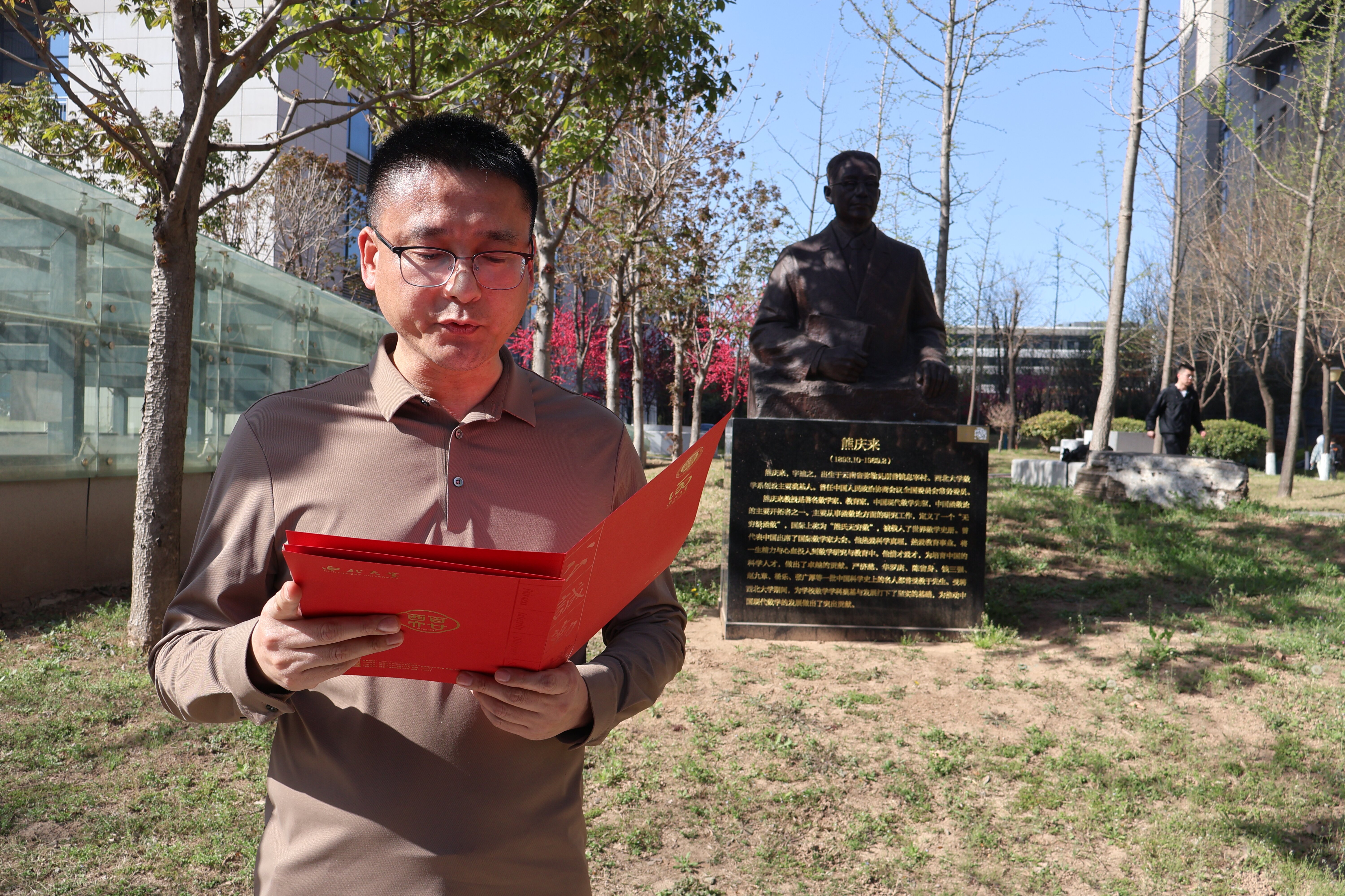 随后学生代表王彬宇同学为大家介绍了熊庆来先生作为西北大学数学学科的奠基人对中国数学事业的深切热爱与奉献经历,同时他号召大家要以熊庆来先生为榜样,始终胸怀天下、心系祖国,勇于面对困难和挑战,不断追求进步和创新,承先生之志追求卓越,继往开来而不忘初心。
