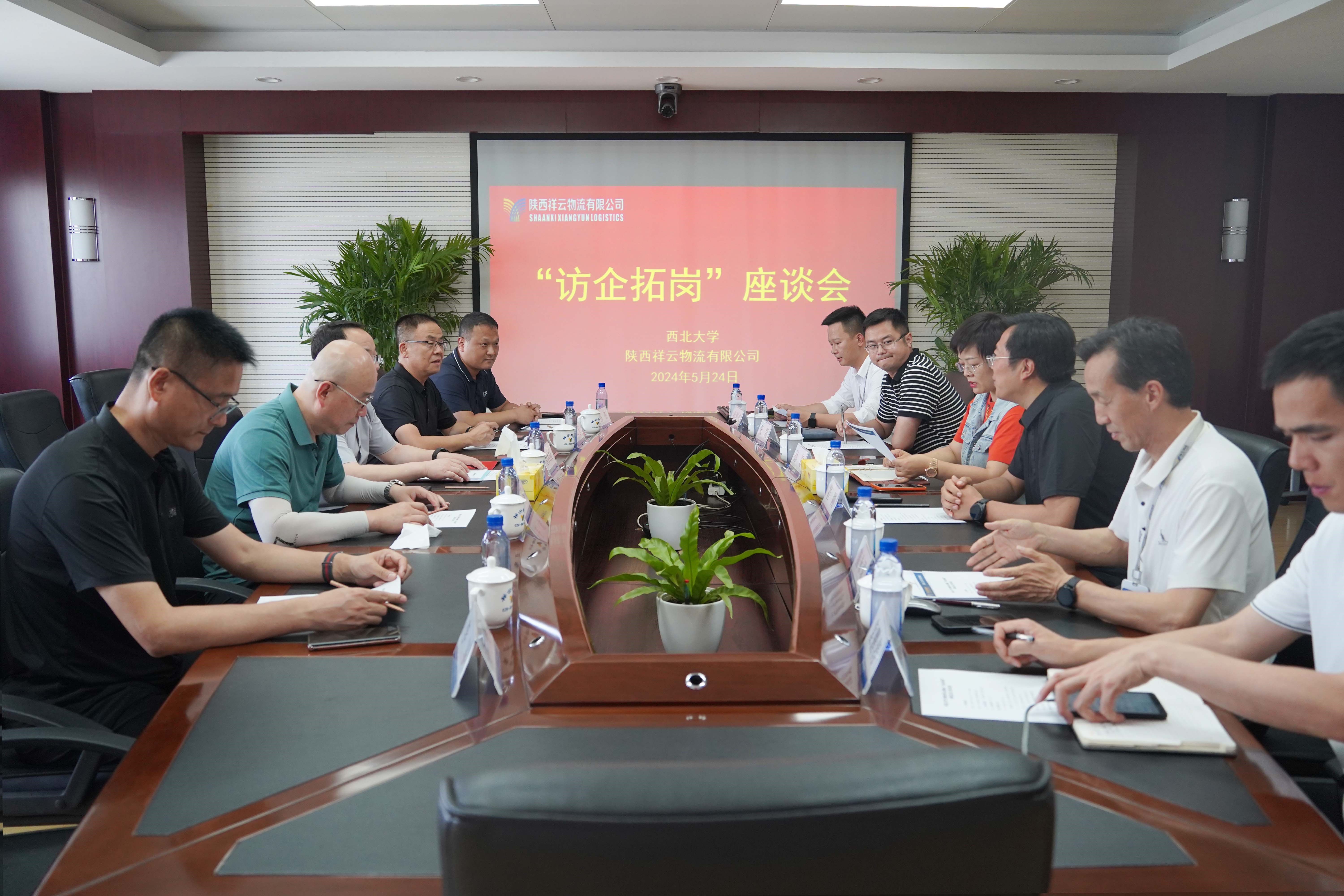 5月24日下午,校党委常委、统战部部长董国强一行赴陕西祥云物流有限公司、陕西西咸新区物业集团有限公司和陕西宏基园林景观建设有限公司交流座谈并访企拓岗。yl88858cc永利官网党委书记李长宏、外国语学院党委书记王军、公共管理学院党委副书记韩杰、yl88858cc永利官网党委副书记田和军等相关人员陪同。